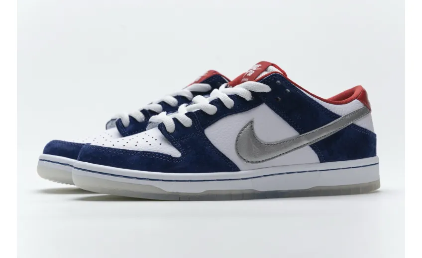 About This Product: This iteration of the SB Fake Nike Dunk Low Pro is Ishod Wair's signature shoe, the 2013 Skater of the Year for Thrasher Magazine. A tumbled leather construction with blue suede overlays appears on the low-profile sneaker. The Swoosh on one hand of the shoe is silver and on the other hand gold, while the Nike branded heel panel appears in patent leather. The mesh tongue bears a patch on it with the name of Ishod Wair. A translucent gray finish is provided to the outsole.