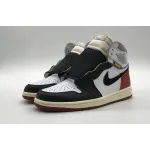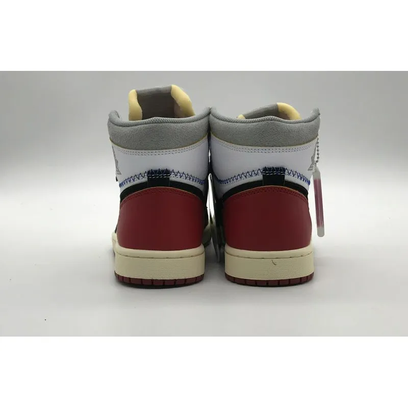 About This Product: The Union x Fake Air Jordan 1 Retro High 'Black Toe' draws inspiration from the venerable Los Angeles retailer's love of thrifting and DIY culture, creating a new take on the sneaker that started it all. In addition to a pre-yellowed midsole for a vintage look, a mismatched collar is attached to the rest of the upper with zigzag stitching, a creative nod to makeshift design.