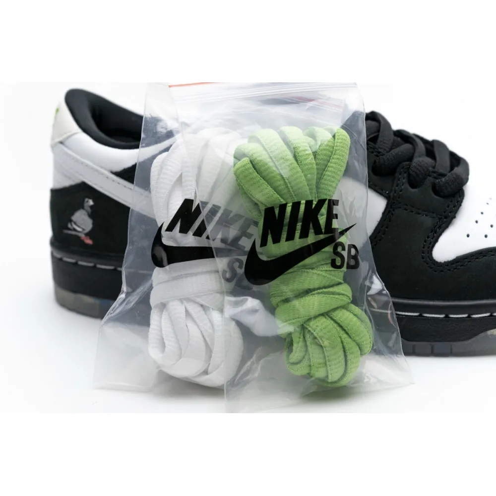 About This Product: The Jeff Staple x Fake Nike Dunk Low Pro SB ‘Panda Pigeon’ extends Staple’s enduring collaboration with Nike SB. The moniker lives up to its name with a black and white pattern on the leather and suede upper, finished with the integral pigeon on the lateral heel. A translucent outsole displays a collage of newspaper headlines referring to the legendary Pigeon Dunk launch from 2005.