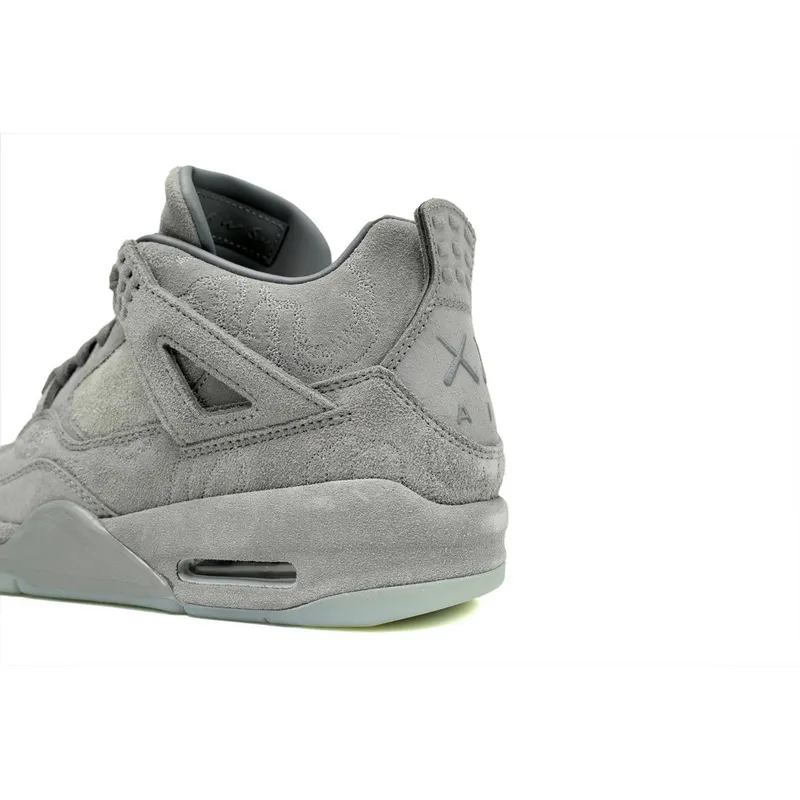 About This Product: The fake KAWS x Fake Air Jordan 4 Retro is a collaboration between Brooklyn street artist KAWS, a.k.a. Brian Donnelly, and Jordan Brand. The design removes the traditional plastic accents of the silhouette and dresses in a premium grey suede over the entire upper and midsole. The sneaker also has a branding of KAWS' 'XX' on the heel tab. The shoes were released in March 2017 along with a small capsule collection that included a jacket, hoodie, t-shirt and hat. The hype for this release was so intense that police read the riot act at the in-store raffle at Patta in London and sneakerheads hacked into Donnelly's website for an opportunity.