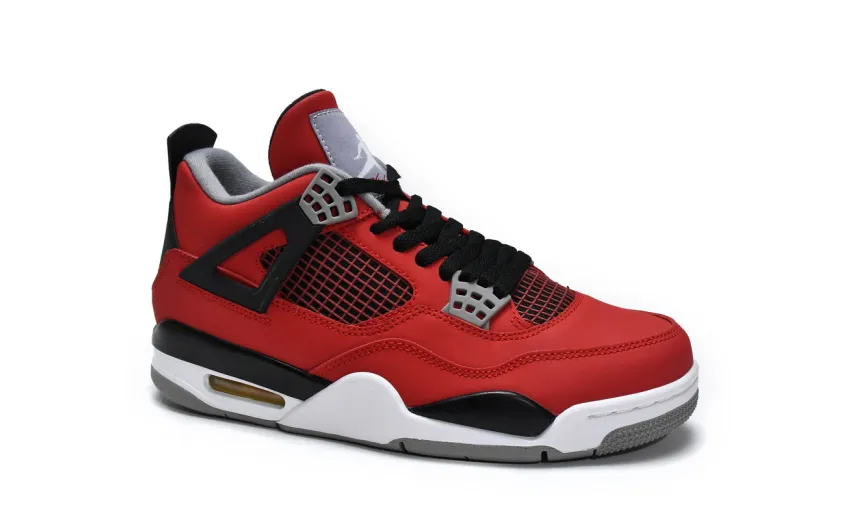 About This Product: The Fake Air Jordan 4 Retro 'Toro Bravo' relased in July 2013, bringing back a colorway that debuted in 2009's Defining Moments pack. Featuring a nubuck upper in Fire Red, the look is complemented by black detailing and Cement Grey on the eyelets, tongue tag and outsole. Visible Air in the white midsole provides cushioning.