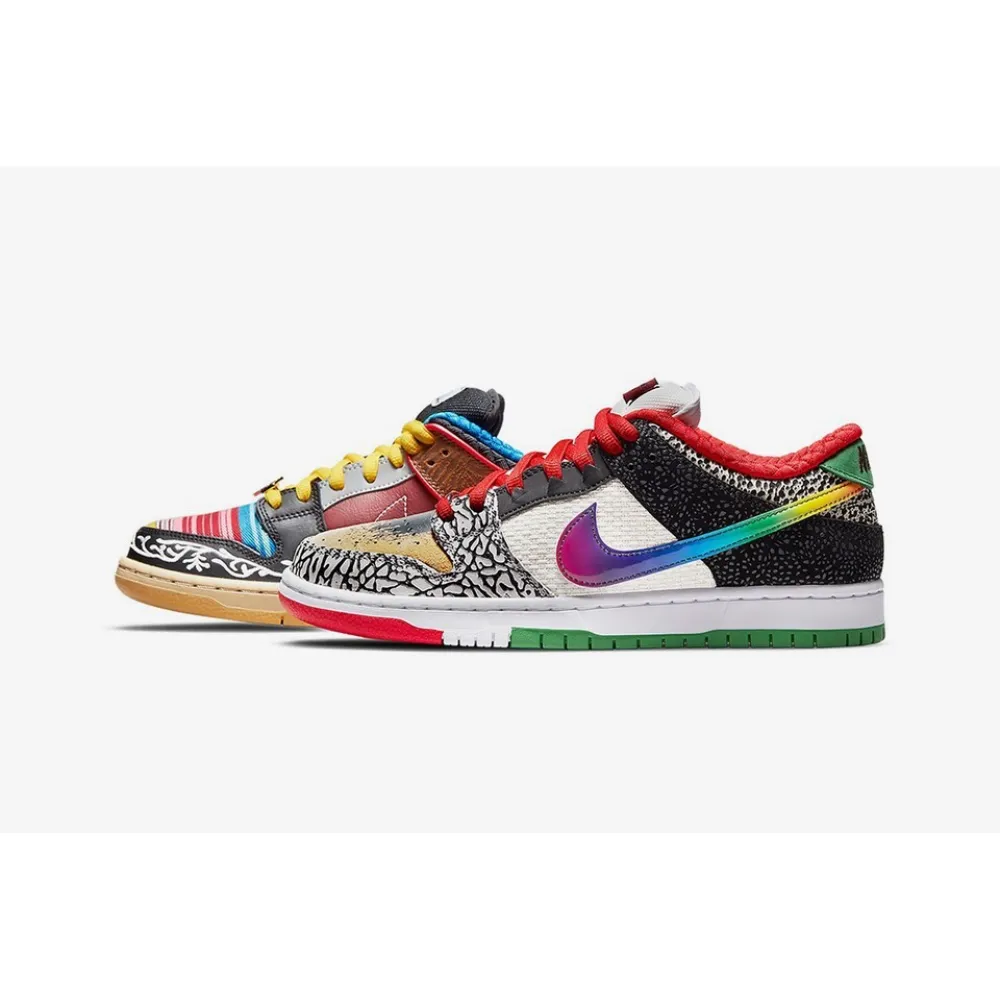 About This Product: Paying tribute to Paul Rodriguez Jr. and his longtime partnership with Nike, the Fake Dunk Low SB 'What The Paul' draws from various P-Rod silhouettes to achieve its discordant look. The P-Rod 1 gets the nod via the J-Rod's elephant print overlays, with the toe boxes representing the 'Mexican Blanket' and 'Stash.' The quilted inner lining draws from the P-Rod 2, while a metallic lace deubré is drawn from the 2020 Mexico-themed SB Dunk High. The mismathched tooling completes the look.